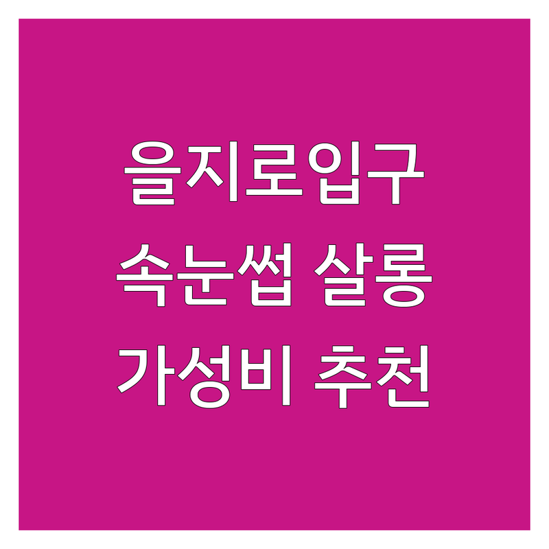 | 아이쁘니 | 을지로입구역 3번출구 (경기빌딩 2층) | 빠르고 꼼꼼한 시술, 높은 재방문율, 다양한 모 종류 | 매일 11:00 – 21:00 (토/일 18:00까지) | 속눈썹펌 4만원, 다크브라운 볼륨 7만원 |